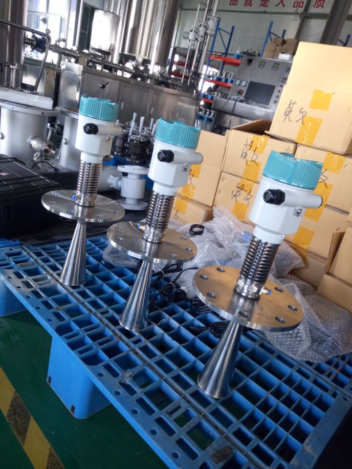雷达液位计是由发射器头和天线部分组成,发射器以连续变化的频率向液体表面发送微波信号。当被反射的信号返回到天线时,它便与正在送出去的信号混合。由于发射器连续地改变被发射信号的频率,在发射与反射信号之间将会有一个频率差。该液位计把这两个信号混合起来,产生了正比于至液体表面距离的低频信号。