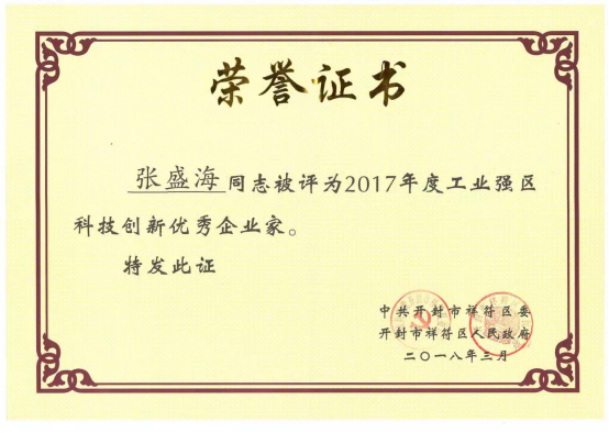 “优秀企业家”证书 在如此优秀的领跑人带领下,相信青天仪表一定会成为让广大业主认可的民族品牌。